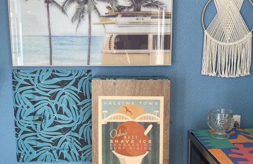 The cabin is perfect for a fun getaway or romantic staycation, with an homage to our favorite place, Hawai'i!