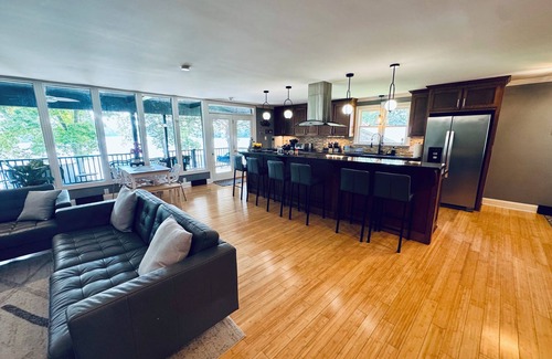 Get away from the stresses of life with this 3-Bedroom lakehouse with large boathouse. Sleeps 10 people in bedrooms and additional spaces on living room on couches. Breathtaking view of the lake and surrounding. Enjoy the water with included floating water mat or explore the area with our 2 kayaks and 2 paddle boards. Home features 3 bedrooms, 2 full baths, spacious full kitchen, washer/dryer, fire pit, 1Gbs WIFI, YouTube LiveTV, gas grill , whole house standby generator and other amenities. Please no vaping or smoking in the house if you want to smoke, please do so outside, not in the garage and treat this property like you would treat your own at home!!