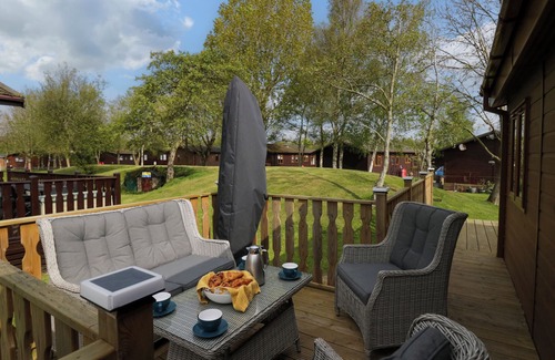 The living areas in this single-storey lodge consist of an open-plan kitchen, dining area and sitting area, with an electric oven, gas hob, microwave, fridge/freezer, washer/dryer, dishwasher, TV, and electric oven. The bedrooms consist of a king-size with en-suite bathroom, a double, and a twin, all with TVs, along with a main shower room. Outside there is a wrap-around veranda with decking, furniture and barbecue, off-road parking, and further communal parking. You'll find a shop in 1 mile, and pub in 0.2 miles, and Pine Lake in 1.4 miles. Sorry, no pets and no smoking. WiFi, fuel, power, bed linen and towels are included in the price. A highchair and travel cot can be arranged on booking. 34 Lakeside is the ideal base for a family getaway to Lancashire. Note: There are steps up to the property. Note: There is an on-site swimming pool, which can be used by guests. Please note; This property accepts a minimum of 2 nights only.