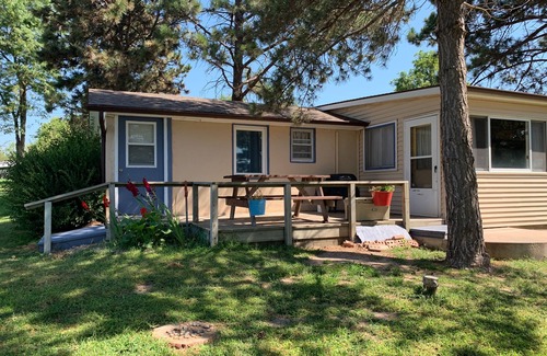 2 bedroom, 1 bathroom cabin along the north side of Harlan County reservoir. Bedroom #1 which we refer to as the "fishing bedroom" has a queen bed. One cot is available for extra sleeping space if needed. Bedroom #2, aka the "hunting bedroom" has 2 twin beds and a queen size bed. 6 people stay comfortably, 7 can be accommodated if you want people to sleep on the cot or couch. Fresh linens and some bath towels provided.