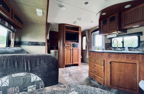 Get ready to relax in this fantastic 1-bedroom recreational vehicle in Bridgeport. This cozy space features 1 queen bed in the bedroom, a living room with 2 queen beds and 1 sofa bed, and a bathroom with a shower. With amenities like AC, WiFi, and heating, guests will feel right at home. A great place to call homebase while you're away, we hope you enjoy your stay.