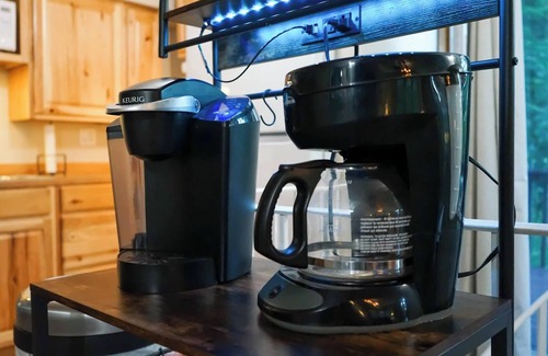 Our compact but fully equipped kitchen has everything you need for simple meals, including a coffee and tea bar stocked with fresh coffee grounds, tea bags, and a Keurig. Enjoy your meals from the dining table or take them outside for a true alfresco experience.