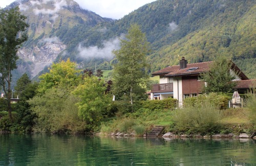 Comfortable, spacious home on a beautiful, small lake midway between Interlaken and Lucerne. Located in Lungern, a quiet, down-home farming village. Individually owned by family with kids, comfortable for large family or two to three couples. Direct access to lake for swimming; walking distance to shops, restaurants, waterfall, tennis courts, mini-golf, unique indoor firing range, hiking trails, beach on the lake. Small motor boat rental optional with house; nearby rental of bikes, wind-surfers, paddle boats. Located in the center of Switzerland, perfect for day trips around the country. 20 minute walk from the station to the house and 25 minute walk to the station (uphill), about 1.6 KM .