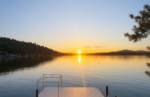 Escape to a cozy hillside cabin boasting stunning views of Hayden Lake, a private dock, and a relaxing outdoor soaking tub. This light-filled A-frame retreat features a queen bedroom, a loft with additional beds, and convenient lake access. Perfect for families and couples, enjoy North Idaho sunsets, explore the lake, and walk to The Boathouse Restaurant. Your lakeside escape awaits!