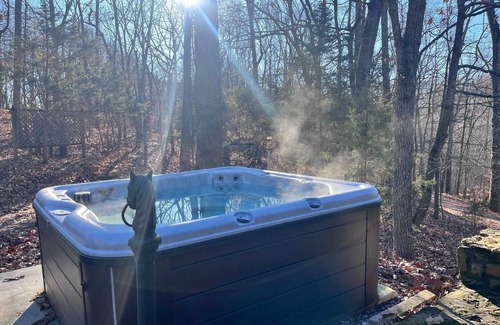 Reconnect with nature at this unforgettable forest escape. Soak in your private outdoor hottub ($75 setup fee). Walk to the Overlook for a romantic sunset or hike down to Lake Gratitude. Sit outside on the patio sipping your morning coffee as the rising sun enlightens the nearby hills. Large room lots of afternoon sun. Sitting porch with stunning view of forest. NO PETS
