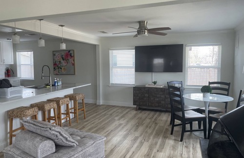 Completely remodeled All NEW. Non-obstructed view and access to lakefront and boat dock. Across the street from shared boat docks. Covered parking. Great view of lakefront and directly across the street from the lake. WE HAVE 7 HOUSES ON THIS SAME WATERFRONT. Try zooming in on the MAP feature to see all these together. Rent one, two, or even seven if a group wants to be together.Beautiful shade trees with breeze on most days. Covered porch. Great house for a getaway or a longer short term rental. You can bring your boat and dock it across the street, or pick one of the houses even closer to the dock.