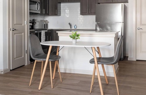 Tucked into the peaceful Pflugerville neighborhood, The Parker Austin offers a stylish retreat just 15 miles from downtown Austin. Ideal for short-term visits, work trips, or extended stays, our fully-furnished apartments feature full kitchens with stainless steel appliances, stylish furnishings, and in-unit laundry. Outside your door, enjoy two resort-style pools, a dog spa, and coworking spaces with conference rooms.