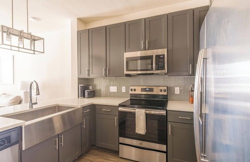 Enjoy a spacious, fully-furnished apartment just minutes from The Woodlands, perfect for monthly or extended stays. Each home features a full kitchen with stainless steel appliances, granite or quartz countertops, and an in-unit washer and dryer for everyday convenience. Start your morning at the Starbucks coffee bar, unwind by the resort-style pool, or stay active in the fitness center with Peloton bikes.