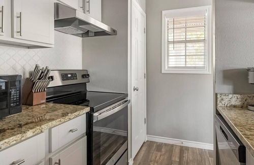 Stay minutes from major employers like Southwest Airlines, Rackspace, and Randolph Air Force Base at The Lynx. Perfect for extended or monthly stays, each apartment features a full kitchen, walk-in closets, in-unit laundry, and private outdoor space. Enjoy access to a fitness center, pool, pet play area, and more. Whether you're commuting, exploring downtown, or relaxing at home, you'll love being close to public transit, restaurants, and local parks.