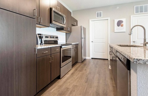 Nestled in tree-lined Chesterfield, steps from Central Park and the Amphitheater, The Parq at Chesterfield offers fully-furnished apartments ideal for flexible stays. Whether you're staying for a month or more, enjoy resort-style perks like a pool with cabanas, fire pits, a 24/7 fitness center, and hammock-lined courtyards. Each unit features a full kitchen with granite countertops and stainless-steel appliances, in-unit laundry, workspace, and fast WiFi.
