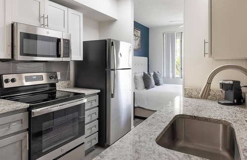 Stay in the heart of Tempe at The Access, just minutes from ASU, the light rail, and Mill Avenue’s buzzing food and nightlife scene. Our fully-furnished apartments are ideal for short-term, monthly, or extended stays, featuring full kitchens with modern appliances, in-unit laundry, and fast WiFi. Stay active at the rooftop basketball court, hit the spin room, or unwind at the resort-style pool and outdoor spa.