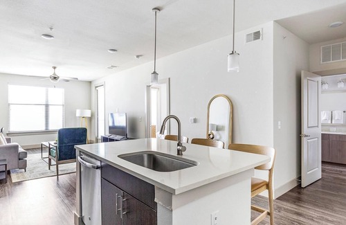 Stay in the heart of Midtown Park, Dallas, just minutes from Downtown, NorthPark Mall, and some of the city’s best shopping, dining, and trails. The Mark at Midtown Park offers fully-furnished apartments perfect for flexible stays. Enjoy full kitchens with quartz countertops, spa-inspired baths, and oversized balconies. Unwind at the resort-style pool with cabanas, or stay active in the TRX-equipped fitness center.