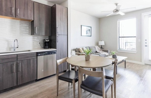 Experience the vibrant lifestyle of San Antonio’s premier shopping and entertainment district at Tribute at the Rim. Ideal for flexible stays of any length, our fully-furnished apartments feature full kitchens, stylish furnishings, in-unit laundry, and fast WiFi. Right outside your door, unwind by the pool and fire pit, catch a sunset from the sky lounge, or stay active in the 24-hour health club.