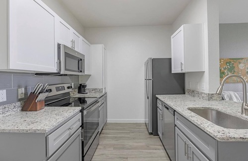 Stay in the heart of Tempe at The Access, just minutes from ASU, the light rail, and Mill Avenue’s buzzing food and nightlife scene. Our fully-furnished apartments are ideal for short-term, monthly, or extended stays, featuring full kitchens with modern appliances, in-unit laundry, and fast WiFi. Stay active at the rooftop basketball court, hit the spin room, or unwind at the resort-style pool and outdoor spa.