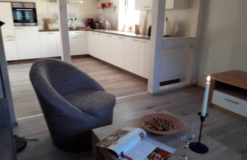 In the house there are two separate apartments with an upscale amenities, in a modern country house style. On each about 76 m² are a generously designed living-kitchen area, 2 bedrooms with two beds (extra bed sofa bed is possible) and a bathroom with shower spread over two floors. The quality of living contributes to a fully equipped kitchen as well as available towels and bed linen.