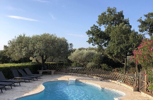 A converted, spacious, comfortable villa (accommodates 2 families comfortably) on the edge of national park (Parc Regional du Languedoc) and 30 minutes from beaches. The house is situated in a peaceful, very private location in the middle of vineyards and olive groves. Own large pool with spectacular views. Set between 2 lovely old typical Languedoc villages with all amenities, local restaurants 2km away.