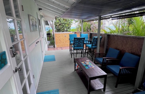 I have been back on the mainland for a week now and my heart aches when I look at the pictures of our beautiful ocean front house. From the moment you arrive you know you will not want to leave this place. Rent your kayak on the way to the house, pick up some food and beverage and you are set for your stay. Gorgeous white sand beaches, crystal clear water, sea turtles swimming right by your house, snorkeling for hours, kayaking to the islands, PIll box hike right in your neighborhood, Ocean breezes at night. The house had EVERYTHING we needed bath towels, beach towels, washer/dryer, ironing board, wifi, dishes, pots,pans, outdoor shower, grill, boogie boards,hammock, beach chairs, icemaker in list goes on and on. The lanai was our living space. We ate, relaxed and hung out there.