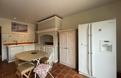 The Lapouyade house is a successful blend of styles, combining the character of a carefully restored old building with today's modern comforts and amenities. Ground floor: Spacious living room with lounge and sitting area (fireplace/wood stove, TV, corner sofa, fiber optic Wi-Fi internet access). Fully equipped kitchen (fridge-freezer, microwave, built-in oven and induction hob, dishwasher). WC. Pantry. Washing machine. Upstairs: 1 master bedroom (1 double bed) + 1 children's bedroom, dormitory-style with 4 antique beds (3 single beds, 1 double bed, 1 baby bed). Linens provided, beds made upon arrival. Shower room, WC. Electric and wood heating available at an additional cost. Terrace, garden furniture, barbecue. Unfenced grounds. Private above-ground swimming pool, 6 m x 3 m x 1.20 m deep. The cottage is located in the immediate vicinity of another cottage (G124030). The shared courtyard in front of this cottage serves as a car park for both cottages (shelter).