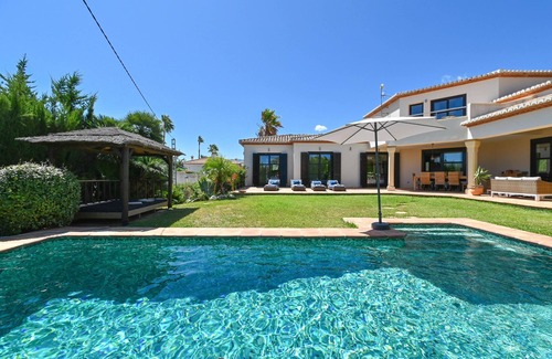 Large and romantic luxury villa in Denia, Costa Blanca, Spain with private pool for 8 persons. The villa is situated in a hilly and residential area and close to restaurants and bars. The luxury villa has 4 bedrooms, 3 bathrooms and 1 guest toilet, spread over 3 levels. The accommodation offers a lot of privacy, a wonderful lawned garden with trees, a wonderful pool and wonderful views of the valley and the mountains. Its comfort and the vicinity of the beach, places to shop and places to go out make this an ideal luxury villa to spend your holidays in Spain with family or friends and even your pets.