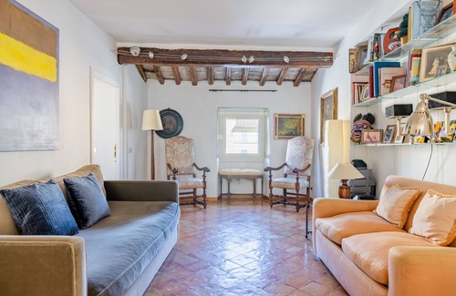 Large stylish facing apartment to XVIII century courtyard, located in the historic center of Rome, close to Campo dei Fiori and Piazza Navona, in the middle between the Vatican City, the Roman Forum and the Colisseum.