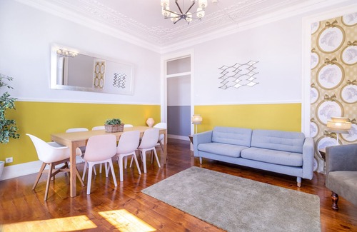 This spacious apartment managed by Central Hill Apartments, is located between the most central and exclusive avenue of Lisbon – Avenida da Liberdade (Liberty Avenue) and Principe Real, the trendiest location for food, beverages and shopping. You are within walking distance from all the main places to visit in Lisbon such as Avenida da Liberdade, Rossio, Baixa, Chiado, Principe Real, Bairro Alto, the São Jorge Castle and the picturesque neighborhood called Alfama. It´s a perfect location to enjoy the traditional daily life and the nightlife of the city! Forget taxis... you can walk everywhere!The 200 square meters apartment is on the 1st floor of a very charming building from the beginning of the XIX century, with original ceiling stucco and fine old wooden floors, but no elevator. It features 7 bedrooms, one living and dining room with a small balcony, 3 bathrooms, an equipped kitchen, and are plenty of sunlight.Address of the Apartment:Rua da Alegria 61, 1250-182 Lisboa, Portugal (1st floor without elevator- entrance via basement level so consider climbing 2 floors)The room setup is the following:Room #1: 1 double top bed + 1 single pull-out bed (sleeps 2+1)Room #2: 1 double top bed (sleeps 2)Room #3: 1 single top bed + 1 single pull-out bed (sleeps 1+1)Room #4: 1 double top bed (sleeps 2)Room #5: 1 double top bed + 2 single pull-out beds (sleeps 2+2)Room #6: 1 single top bed + 1 single pull-out bed (sleeps 1+1)Room #7: 1 double bunk bed (sleeps 2+2)3 single airbeds available (sleeps 3, can be placed in in the living room or rooms #4 and #5)Max Nº Beds: 16 Beds (bunk bed equals 2 beds)Max Capacity: 22 PeopleNote(s): This apartment has connected bedrooms. Room #4 accessible via Room #3, Room #7 accessible via Room #6.Bedroom Preparations: - Top beds are prepared first, followed by bunk bed, pull-out beds, sofa-bed, and airbeds.- We will prepare separate beds for each guest until it reaches the maximum number of beds (excluding airbeds), after that we will consider 2 people in the double beds.- You can see which pull-outs have been prepared as they will be slightly open and with the towel and pillow on top. We provide 1 towel per guestImportant Information:- This apartment is located in a very sensitive building where the rules must be followed at all times and the neighbors respected.- No loud noises or music during the day and silence at night (starting 10pm).- Parties, smoking and music speakers are strictly forbidden.- Air conditioning or central heating not provided (portable heaters and fans provided)- Due to its central location in the touristic area, you should expect some outside noise.Enjoy the total privacy of your own apartment, with exclusive and complete access throughout your stay. This apartment is perfect for families or groups looking to explore Lisbon, offering a rare combination of central location and ample space to accommodate larger groups, all within walking distance of key attractions.Check-in & Check-out:Check-in: starting at 16:00Check-out: until 11:00- This apartment offers a convenient Self-Check-in process - once your reservation is confirmed, you will receive instructions and procedures to get your Access Code and perform the Self-Check-in.- On the day of your check-out, just ensure you exit the apartment until 11:00. Failure to leave the apartment before 11:00 will result in fines.- It’s not possible to store luggage at the apartment after check-out. Luggage pick-up service available (contact for more info)- Central Hill Apartments reserves the right to withhold the access code until all required procedures are completed by the guests.- In exceptional circumstances, an in-person check-in may be required, which, if conducted after 20:00, will incur a €30 late check-in fee. To avoid any last-minute complications, we strongly recommend completing all procedures in advance.Extra Guests:It’s not allowed to have more guests than the ones selected on your reservation. If there are more guests, an extra guest fee might be applied (35€ per person per night)- contact us for authorization and confirmation of the extra guest fee amount. Please ensure you agree with the information above before booking. If you require assistance in selecting an apartment with specific requirements, such as easy access, an elevator, bedrooms /bathrooms, or a quiet street, feel free to contact us. Alternatively, you can visit the Central Hill Apartments website, where you’ll find over 30 apartments in the best locations within Lisbon's tourist area.Looking forward to host you,Central Hill Apartments