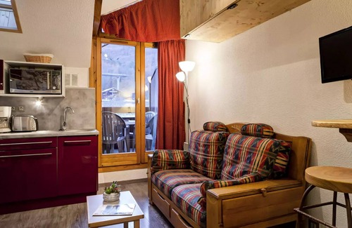 Accommodation: 2-room apartment of 29 m² for 4 people maximum on the 5th floor of the residence with elevator. Has a south-facing balcony with views of the main street in the village center, close to shops and restaurants and bars. Entrance with storage cupboards, living room with dining area, bench seat and television. Kitchen area equipped with: electric hob, cooker hood, microwave, dishwasher, refrigerator with freezer, coffee maker, kettle and toaster. BEDS: - Bedroom with roof window: a 140 cm double bed (2 people). - Mountain corner: a set of bunk beds (2 people). Bathroom with shower and toilet. Washing machine. WIFI internet access included. Ski locker. Covered parking space included in the rental. RENTAL CONDITIONS: Bed linen included from 15/12 to 15/04 for short winter stays. Bed linen is not included for year-round spa stays. Towels and end-of-stay cleaning not included and on request. Deposit required on arrival. Pets not allowed. NO SMOKING IN THE ACCOMMODATION