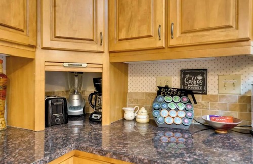 KITCHEN: Dishwasher, stove, double oven, refrigerator, microwave, cooking basics, dishware & flatware, breakfast bar, Keurig, complimentary coffee, toaster, Crockpot, spices, trash bags & paper towels