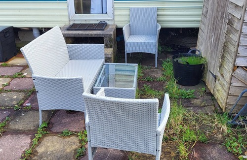 Outside the caravan there is a small storage container to keep your furniture cusheons dry overnight and a 4 seater patio furniture set with glass top table. There is a whirly clothes drier under the caravan which you can place in it's designated hole and your vehicle parking space. There is an old wooden shed kept in place should you need to keep fishing baits with tops on or equipment such as surf boards etc.