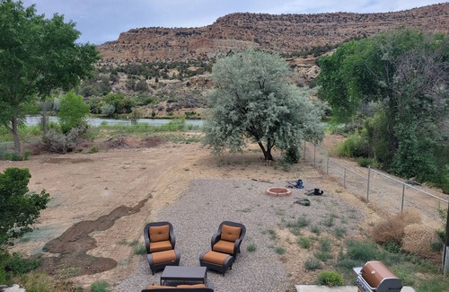 Great house, sleeps 10. Access to the San Juan River from backyard, minutes from prime fishing and Navajo Dam. Full Kitchen, cable, internet, large yard with BBQ grill. Sun room area has extra bunkbed, room for everyone. Lots of gated space to park campers, cars and boats.