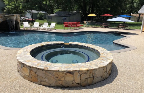 Enjoyable and relaxing pool house that easily sleeps five people in North Stafford near Quantico Base, the new Widewater State Park (within a mile), and Potomac Point Winery (just a few miles away). The Pool House is one-bedroom, open plan living room area with full kitchen. Pool offers tanning ledge, cozy corner and grotto. Tiki Bar area with bar, grill, TV and fire pit.