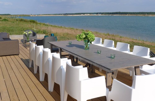 The terrace faces south and with its 60 m² offers enough space to enjoy an extensive breakfast outdoors and to start the day relaxed. Our holidaymakers also have a fantastic view of the lake from the sauna.