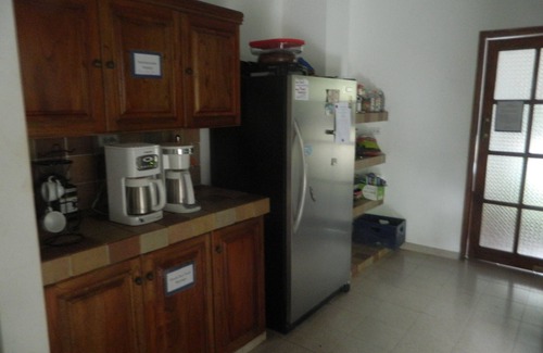 The La Jungla Experience rental house is available to rent for large groups and families. We have a dorm room with three bunk beds perfect for kids and a queen sized bed. Two private bedrooms, one with a ensuite bathroom (both with king beds). Two indoor bathrooms with showers, one outdoor bathroom with shower - all with hot water. A large dining area and lounge area with multiple couches and TV. An outdoor lounge/bar with hammocks, couch, and dining area. Fast WiFi and (free) Laundry Room. Owner stays on property in SEPARATE quarters but are not there every night, only occasionally. Friendly pets welcome.