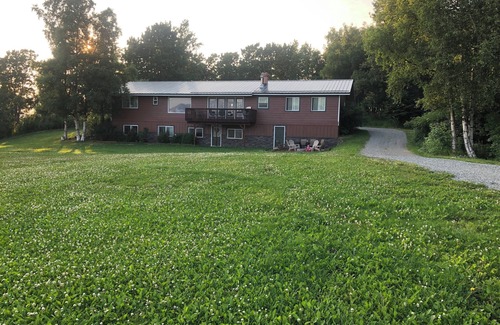 Incredible Price for Size in the Valley - Up to 28 people! Large groups, including sports teams, and families truly enjoy the spacious, entire house. There are 10 full and queen size beds, as well as four futons totaling 28 that could sleep in shared accommodations! The home was an original Sears home built in the 1970s on acreage located on a bluff of the Matanuska River. Much of the house is original/retro and in a quiet, country setting with wide open spaces to almost every side. Our home fits so many people with an extremely economical price for the space. With so many people, it has other space that is needed - 2 full kitchens and 3 full refrigerators. Though it feels secluded with wide open spaces, it is only 5 minutes to downtown Palmer, where there are several shops, breweries and restaurants that exemplify the quaint, Alaskan pioneer spirit. The Palmer property is close to the Alaska State Fair, close to local hiking areas, and only about a twenty minute drive to the start of the Iditarod Race. The owner's home shares the short driveway to the road, but otherwise the property sits on 49 acres of Alaskan beauty.