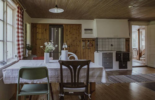 The cottage is surrounded by a large garden, with a lot of space for children to play. The surrounding area consists of forest and wilderness, with a lot of hikingtrails. We promise that no traffic will disturb you. You will have access to our lake with "Vildmarksbyn" with huts, fire place, boat, and canoes. Fishing included.