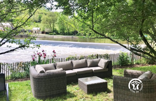 This magnificent mill is stylishly furnished. It offers exceptional comfort from sofas to bedding to garden furniture. Everyone will find something to do: lazing around admiring the river from a terrace or in front of the stove, games room with table football, ping-pong, billiards, not to mention water games with paddle and kayak... even Orange TV and Netflix. And why not cross the Mayenne by boat to reach the restaurant on the towpath?
