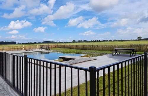 Large holiday home with shared 6x12m natural pool, which is open in summer. Please note that because of the natural filtration processes we can not guarantee that the pool is open at all times. Our place is at 5 minutes drive to the beach. Bramendijk offers large, modern and climate neutral apartments, that are heated by heat pumps and solar panels. Modern design, spacious rooms en open kitchens, including dishwashers and ovens. Laundry machines are also available. Each apartment has its private terrace at a grounds of 8500m2. Bramendijk lies next to nature conservation area Waterdunen, through which guests can walk to the sea. Groede is a historical village in Zeeuws Vlaanderen and has several restaurant options. During 2022 we will construct some additional apartments on the property, but the units for rent are fully finished.