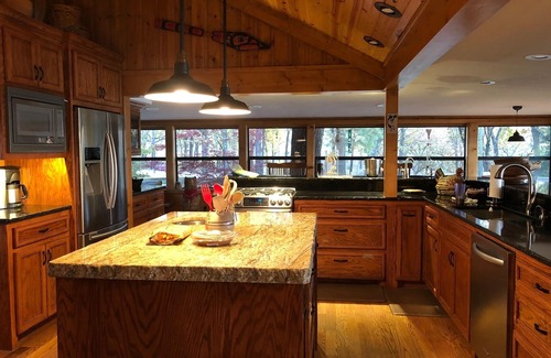 Enjoy the view of the lake and property from three decks, with a hot tub providing one of the best views! There is a lot of space in this 3400 square foot house. "The pictures do not do it justice."