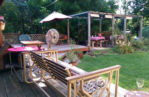 Large yard and downstairs shared deck with gas grill. Large yard with fire pit and enough parking for a trailer or boat. Owners lives in main house, has a dog, chickens and guineas. There are herb gardens with garlic, mint, sage, winter savory, thyme, rosemary, stevia, oregano and basil in season. Fairfield Beach is a small lakeside community with low traffic so walking and biking is pleasant and easy.