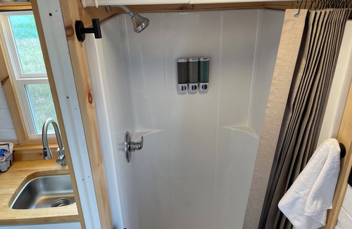 Enjoy a rare and memorable experience in this spacious Tiny House and immerse yourself in the unique charm of rural Kansas, picturesque farmland & open skies - perfect for stargazing. This tiny space features self checkin, a Full bunk bed, loft with a king-sized bed, Wi-Fi & kitchenette with medium sized fridge, microwave/convection, induction stovetop & coffee maker. Basic dishes & cooking supplies provided. Full bathroom comes stocked with towels, shampoo, conditioner & body wash.