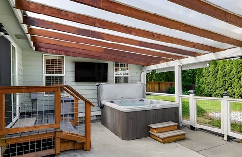 Charming farmhouse retreat just outside of Bellingham, with easy access to Mt. Baker, BC, Birch Bay, and the San Juan Islands. Pick fresh berries at local farms, golf at nearby courses, sip at local breweries, or head out hiking, skiing, or kayaking. After exploring, unwind in the fenced yard with hot tub, fire pit & covered patio. Fully stocked kitchen, cozy beds & ample parking make it stress-free. Pet, kid & family friendly—your home base for PNW memories.