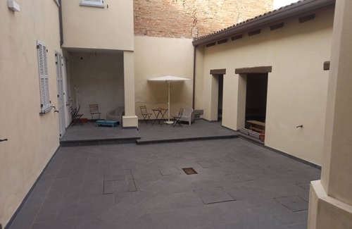 Large two-room apartment on the ground floor on an internal courtyard is located in Faenza. Large two-room apartment on the ground floor on an internal courtyard provides accommodation, featuring Internet, Pet Friendly, Balcony/Terrace, among other amenities. This Apartment features Internet, Pet Friendly, Balcony/Terrace, to make your stay a comfortable one.