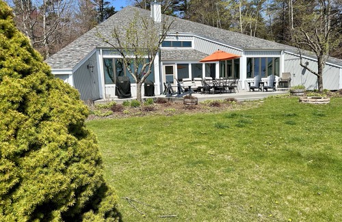 Located at the very end of a beautiful private road, the Sand Castle Beach House is nestled between beautiful Lake Michigan shoreline and a gorgeous forest. The 3 acre private and exclusive lot features an expansive lake side yard that is level and ready for outdoor games. 2 grills on the large lakeside deck are ready for your vacation time. Laze in the chaise loungers or Adirondack chairs and listen to the waves lap the shoreline.
