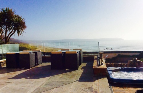 The house boasts one of the most prime locations in Woolacombe with stunning sea view from every room. A large open plan kitchen and living area and sea facing terrace with outdoor seating bbq and hot tub. It has 5 double rooms and 1 bunk room TVs in every room and all are en suite, Parking for 5 vehicles.