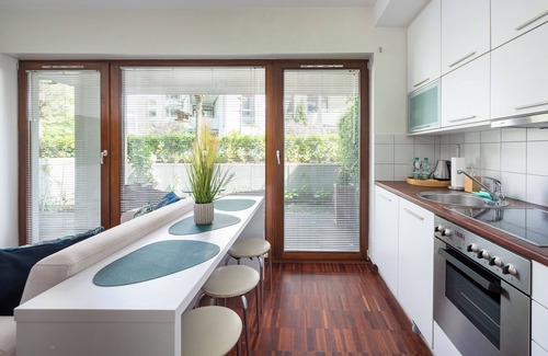 Las Kabacki Comfy Apartment is a cozy apartment that features a living room with a sofa bed and a kitchenette, a bedroom with a comfortable double bed, a bathroom, and a spacious garden with a seating area where guests can relax and enjoy their morning coffee or an evening glass of wine. It offers a range of high-quality amenities, including free WiFi, a TV, a washing machine, an iron, a hairdryer, a fridge with a freezer, an oven, an electric stove, and kitchen accessories. The apartment also includes a parking space in the underground garage.