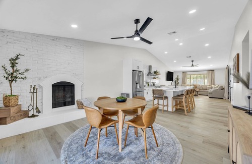 Beautiful spacious, clean, and serene home. 3 bedrooms 1 bath. All bedrooms are equipped with smart TVs and shades to rest peacefully day or night. The kitchen is newly renovated and stocked with all tools and utensils. Microwave, dishwasher, pots, and pans can be found in the cupboards. Towels and tools are in the drawers. Firewood for the firepit and floaties for the pool ( POOL IS NOT HEATED) can be found outside along with a game of cornhole.