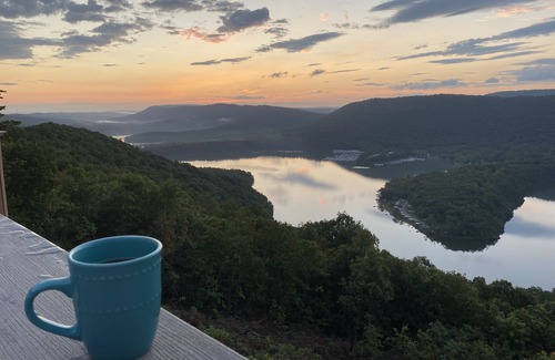 Sip coffee in the sitting room while watching the deer below and the many Eagles in flight year-round. Enjoy the hot tub and an amazing fire-pit while overlooking the lake and mountains for miles. We provide firewood, the chairs, and the S'mores or hotdog roasting sticks, you bring the marshmallows, chocolate, & hotdogs! We even have a slide for the kids for hours of fun.