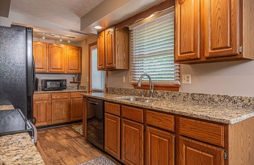 Show off your culinary skills in the fully equipped kitchen that has everything you need to make big breakfasts or late-night snacks. Enjoy your meals at the dining table with seating for six. Deck access makes cookouts a breeze too, and you can dine on the deck surrounded by the sounds of nature.