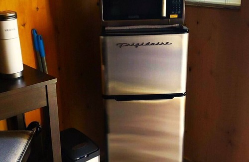 You should also know that this cabin has bottled water in the fridge but no running water. A drinking water tap is nearby, and the restrooms have coin-operated showers that cost $3.00. There is a change machine in the front of the resort in our guest laundry room. You'll receive more details with the guest guidebook message I'll send before your arrival.