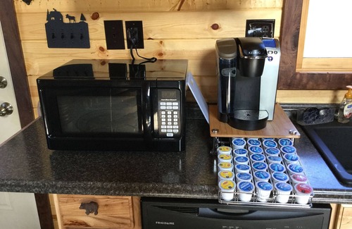 Totally surrounded by woodlands and wildlife this cabin has everything you need for you weekend stay. This newly constructed cabin is equipped with all the amenities you will need. . . from the Keurig coffeemaker to the flat screen TV’s. Sit back with that special someone and watch a movie by the fire and drink a glass of wine.