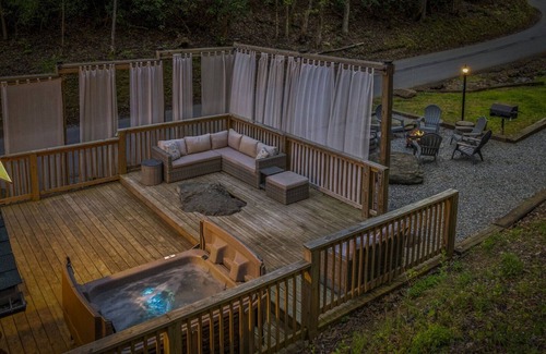 Lazy Bear Valley is a dog-friendly rustic cabin that's in a valley on a very quiet road. You can enjoy flat yard space in the front and the back of the property. When you walk into the cabin you will have a living room with a seasonal (Oct 1 - April 1) wood-burning fireplace then opens up to the dining area and a fully stocked kitchen. In the first bedroom, you find a bunk bed with 2 full-size mattresses for sleeping along with a multicade arcade game to entertain anyone up for the challenge. Down the hall, you will have a bathroom and the second bedroom featuring a queen bed. The kitchen has granite countertops to give you a luxurious feel with plenty of counter space and new appliances. Passing the laundry room you will enter the 3rd bedroom. This master bedroom has a king-size bed, a full bathroom with dual shower heads, and a back door walking out to the back deck sitting area. On the back deck of the cabin, you will have plenty of room to sit on the brand-new patio furniture and can also enjoy the hot tub after a long day out on the town. Come enjoy this newly renovated rustic cabin in a quiet valley within Gatlinburg city limits!